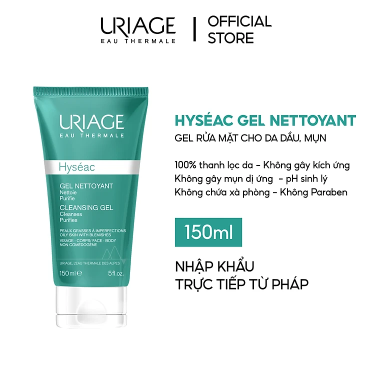 Rửa mặt sạch là một trong các bước quan trọng nhất trong chăm sóc làn da nhờn mụn, và cũng giúp các bước dưỡng sau được hấp thu tốt. Sửa rửa mặt Uriage Hyséac Gel Nettoyant dạng gel dành cho da dầu mụn, và da hỗn hợp với các thành phần và công thức làm sạch được chọn lọc kỹ lưỡng và kết hợp với thể chất dạng gel đặc biệt cũng như tạo bọt min nhẹ, hương thơm tinh tế và thư giãn, sản phẩm giúp làm sạch sâu và mang lại hiệu quả làm sạch cao, giúp lấy đi chất bẩn trên da, các bã nhờn dư thừa, giúp kiểm soát nhờn, làm dịu da, thanh lọc da, mang lại làn da sạch, tươi trẻ và khỏe mạnh hơn.