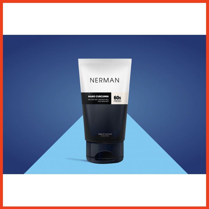 Gel rửa mặt ngăn ngừa mụn Nerman Nano Curcumin 60s Fresh dành riêng cho nam làm sạch sâu, ngăn ngừa vi khuẩn gây mụn (100ml)