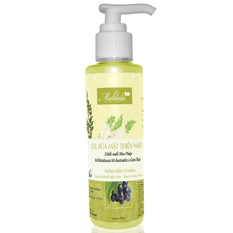 Gel Rửa Mặt Nho Pháp Maldala (180ml) với chiết xuất từ Nho Pháp, lá Melaleuca và cam thảo giúp bổ sung hoạt chất tăng cường dưỡng ẩm và bảo vệ da. Gel còn chứa các dưỡng chất cần thiết, giúp nuôi dưỡng da từ bên trong, cho bạn một làn da trắng sáng, mịn màng. Hương thơm tự nhiên ngọt ngào và quyến rũ đánh thức mọi giác quan, cho bạn cảm giác thoải mái thư giãn sau khi sử dụng.