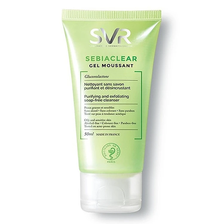 Gel rửa mặt SVR SEBIACLEAR Gel Moussant là chất Gel trong suốt, tạo bọt nhẹ, kiềm dầu tối đa nhưng không chứa xà phòng – một thành phần khiến da bị khô ráp và bong tróc.