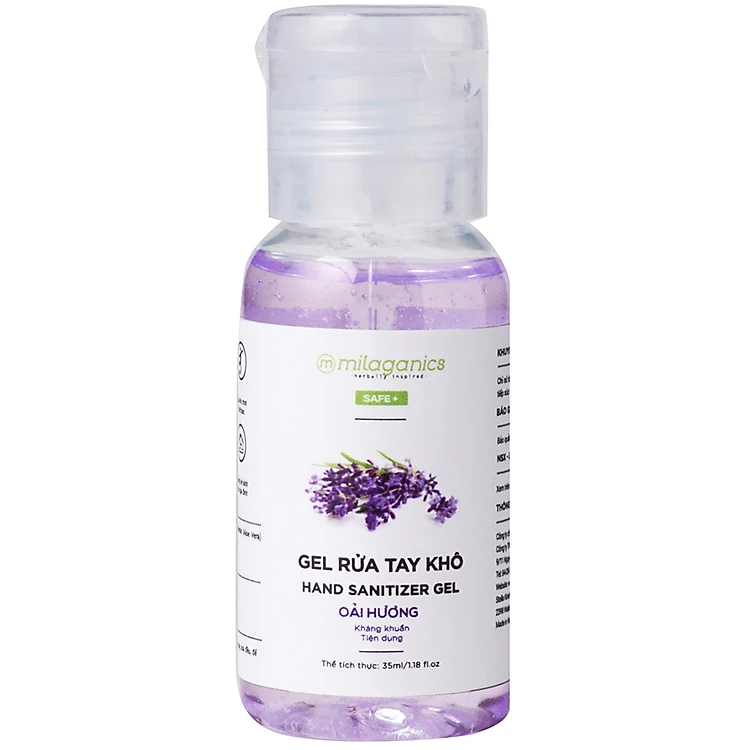 - Gel rửa tay khô oải hương Milaganics Safe+ giúp diệt sạch vi khuẩn, virus, vi sinh vật gây hại mà không gây khô da nhờ bổ sung hoạt chất Glycerin cùng chiết xuất nha đam tươi từ thiên nhiên. Hương thơm oải hương nhẹ dịu cảm giác thư giãn và khử mùi hiệu quả.