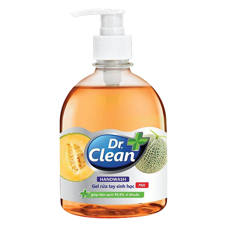 - Gel Rửa Tay Sinh Học Dr.Clean Hương Dưa Lưới (500g) giúp làm sạch vi khuẩn với công nghệ BioClean tiên tiến chứa enzyme sinh học 100% từ Nano Cucurmin tự nhiên.