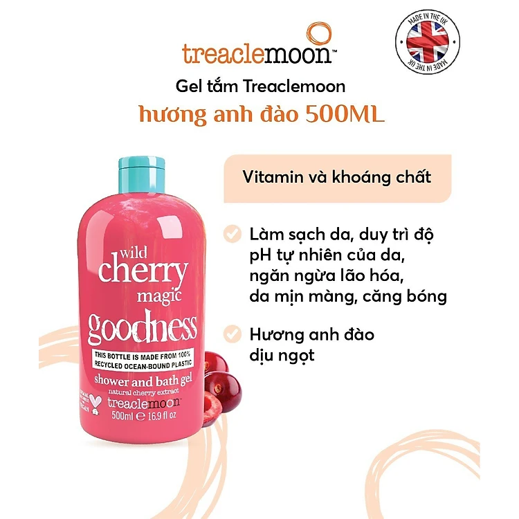 Gel tắm dưỡng da chiết xuất Anh đào Treaclemoon 500ml