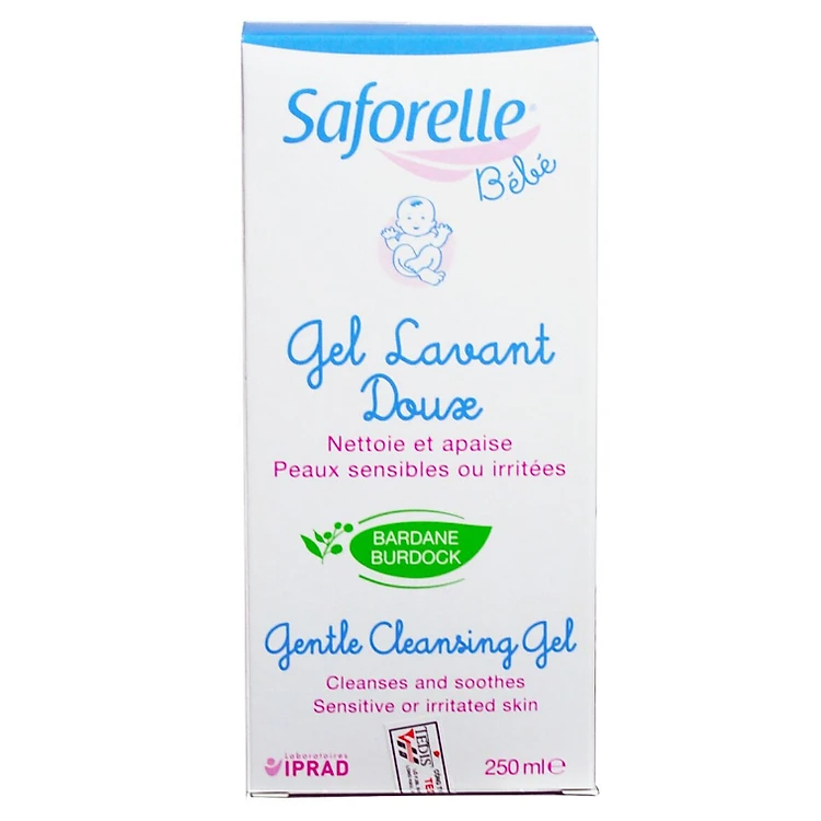 Saforelle Bébé Gentle Cleansing Gel, gel tắm gội nhẹ dịu, được sản xuất đặc biệt để làm sạch và làm dịu làn da mỏng manh của trẻ sơ sinh và trẻ nhỏ.