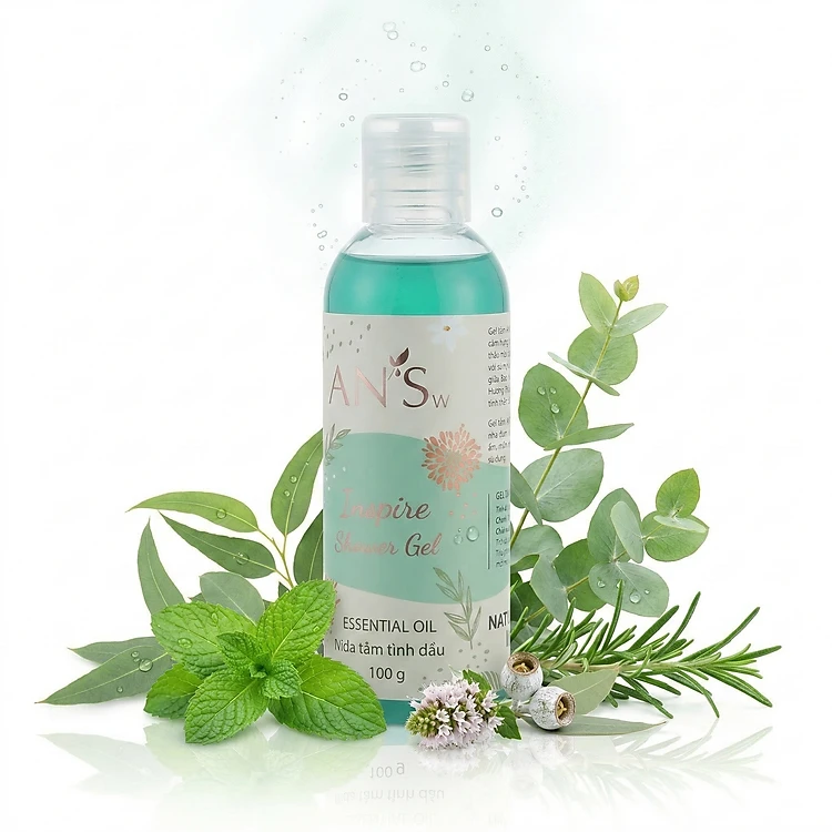Gel Tắm Tinh Dầu Inspire (Bạch Đàn Chanh + Bạc Hà + Hương Thảo): Chai xanh 100g
