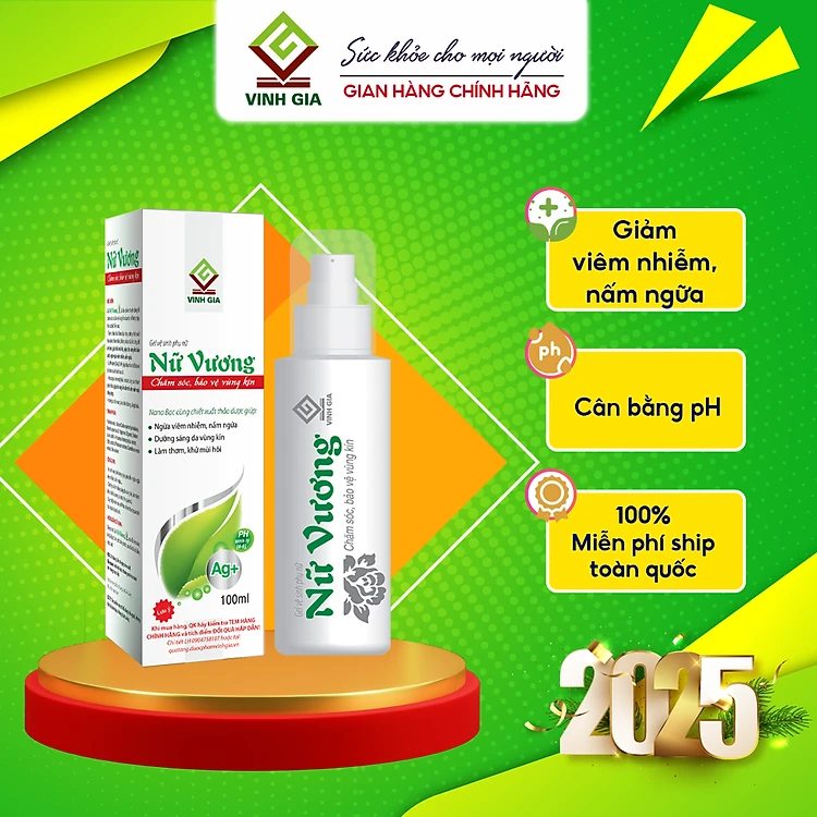 Dung dịch Vệ Sinh Phụ Nữ Nữ Vương VINH GIA Giúp hỗ trợ Làm Sạch Vùng Nhạy Cảm, Cân bằng PH, Làm Thơm Và Khử Mùi Dung Tích 100ml