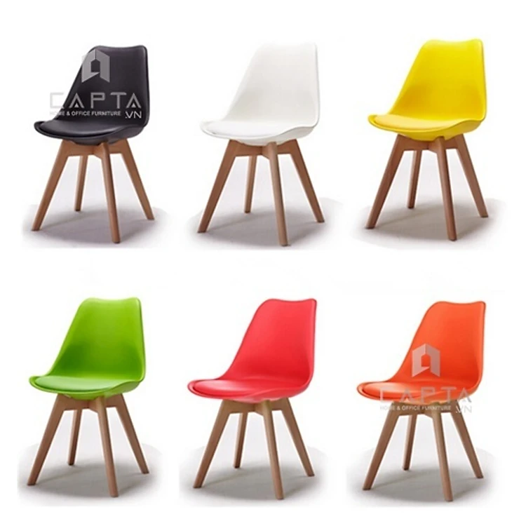 Ghế ăn cafe fash food DSW-P1 Nội thất Capta Ghế ăn nhà hàng thân nhựa có nệm PVC màu xám chân gỗ tự nhiên cố định