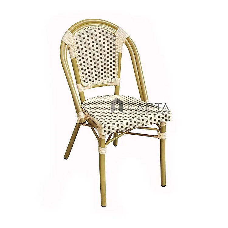 Ghế ăn ngoài vườn giả mây CC2034A Nội thất Capta Ghế cafe ngoài trời nệm nhựa đan màu trắng đen khung nhôm sơn màu nâu vàng cổ điển
