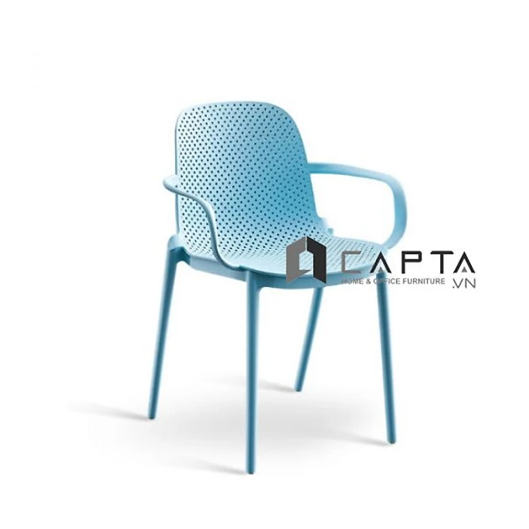 Ghế ăn nhựa đúc nguyên khối màu xanh dương CC1544A-S Nội thất Capta Ghế cafe ngồi ngoài trời nhựa PP màu xanh dương có tay tựa xếp chồng