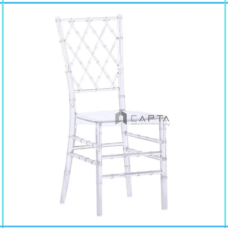 Ghế ăn nhựa đúc trong suốt lưng ống trúc Ghế cafe ngoài trời đẹp cao cấp Tiffany 2A-PC