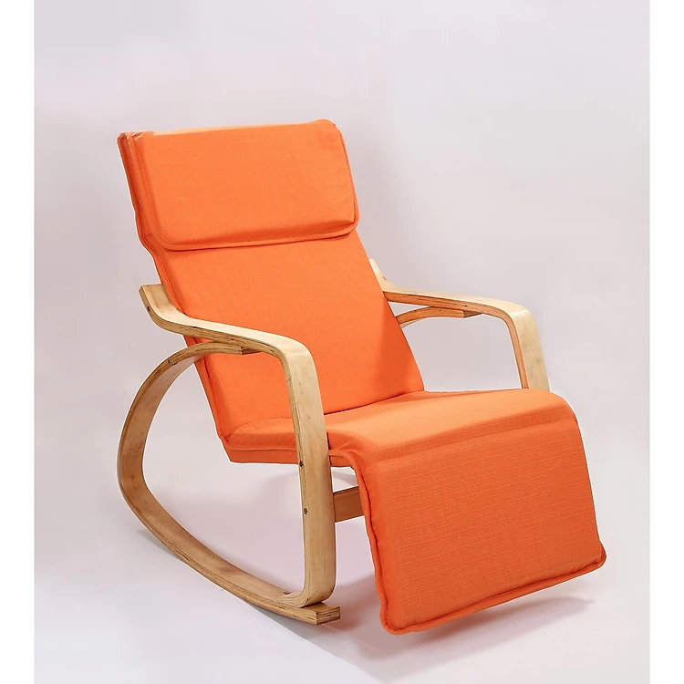 Ghế bập bênh thư giãn với kiểu dáng mới, phần kê chân có khớp liền ghế để tiết kiệm diện tích và ngồi thoải mái hơn.