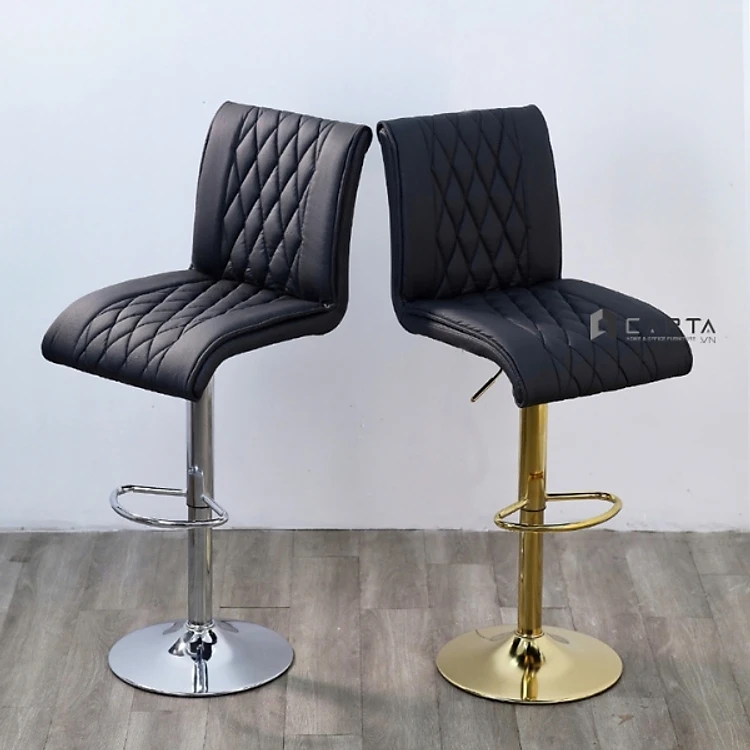 Ghế bar chân thép mạ màu vàng bóng CB2302B-P Nội thất Capta Ghế bar lưng tựa cao nệm PVC cao cấp màu đen chân thép mạ màu vàng nhập khẩu bar chair