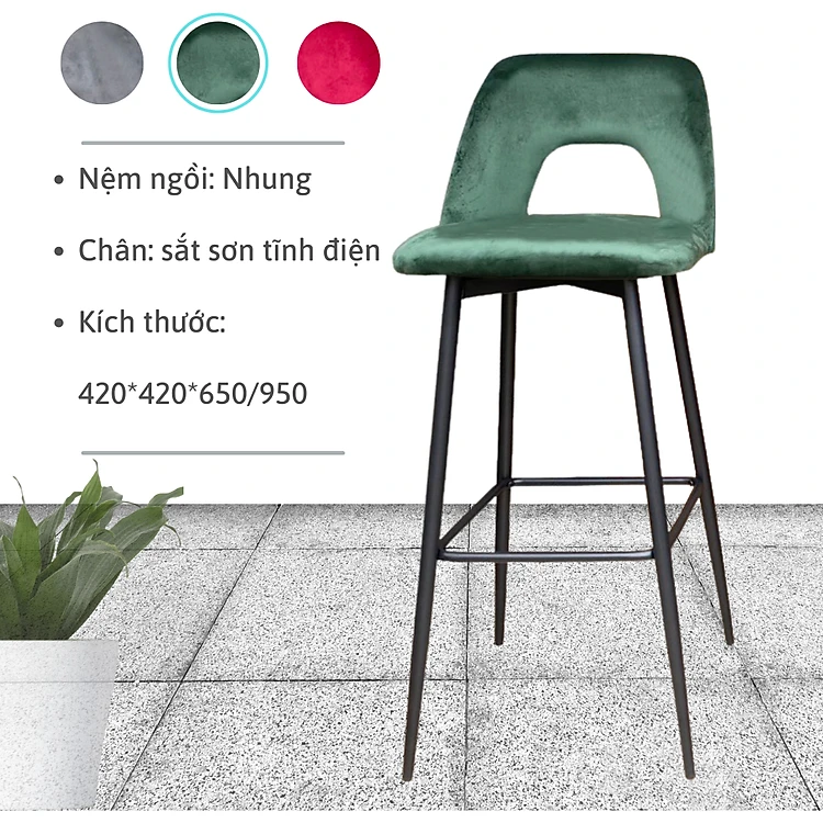 Ghế bar đảo bếp bọc nhung chân sắt tĩnh điện đen chân cao 65 cho nhà hàng cà phê tiệm make up làm tóc /Velvet bar stools / coffee stools / café chairs / livestream chairs / CB LUXE-65F TpHCM