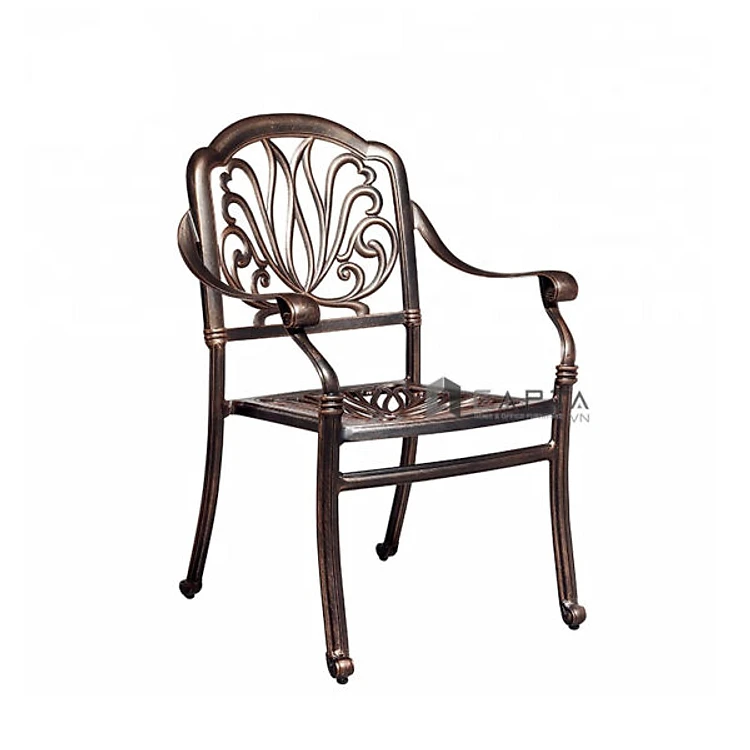 Ghế Cafe sân vườn nhôm đúc màu đồng CC2017-A Nội thất Capta Ghế ngoài trời có tay tựa thân ghế hình bông sen