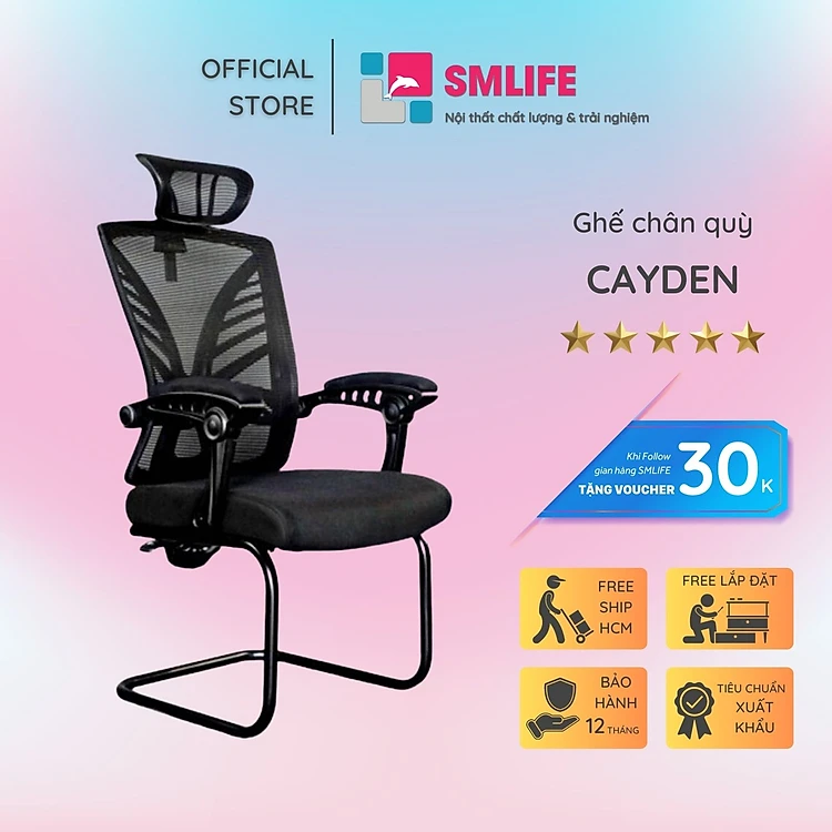 Ghế chân quỳ lưng cao bọc lưới có tựa đầu SMLIFE Cayden