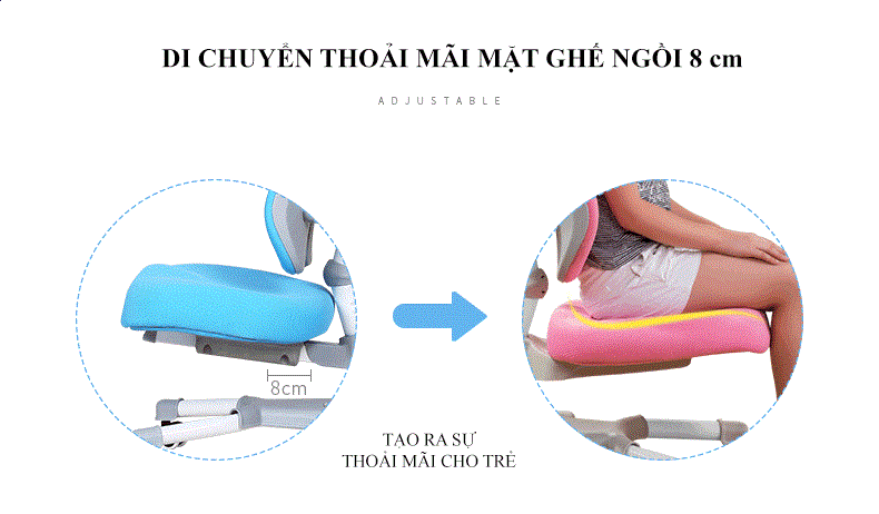 Ghế ngồi học chống gù lưng cho bé có nhiều tính năng thông minh mà bạn không ngờ đến. Ghế cũng có thể điều chỉnh độ cao phù hợp với bé bằng cách nâng hạ chốt cố định rất dễ dàng, trẻ cũng có thể tự mình điều chỉnh những tao tác đơn giản ấy.