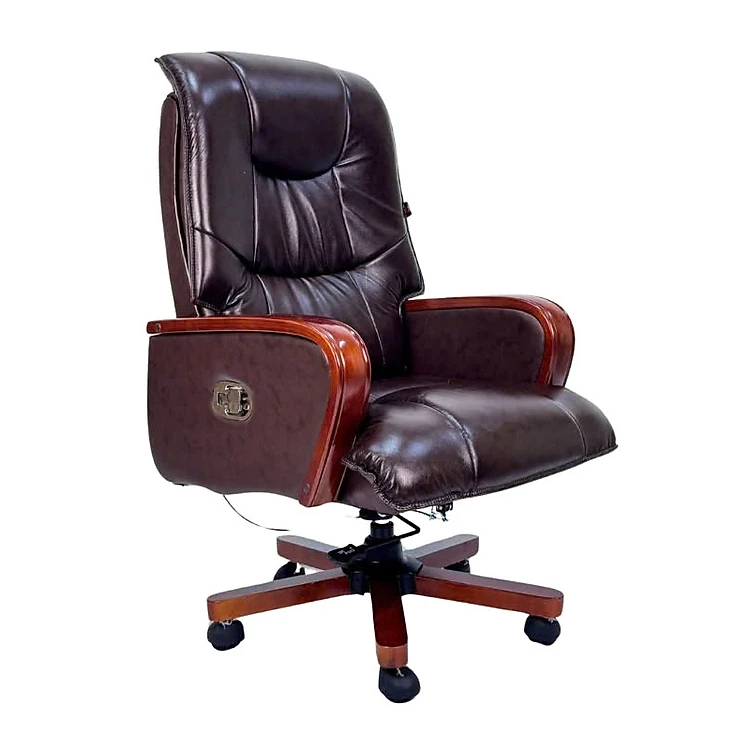 Ghế Chủ tịch da thật CD7159-L Nội thất Capta Ghế Giám đốc nệm da bề mặt tiếp xúc chân ghế thép ốp gỗ ngả lưng nghỉ trưa, điều chỉnh xoay nâng hạ độ cao