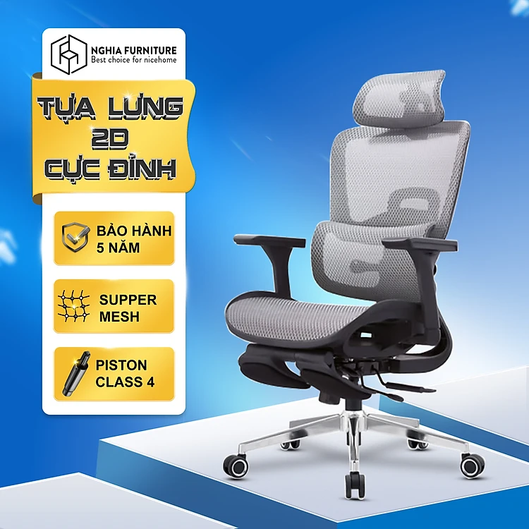 Ghế công thái học Nghia Furniture Mirai Pro, Ngả ghế 135 độ, tựa lưng 2D siêu tùy chỉnh, piston class 4, bảo hành 5 năm