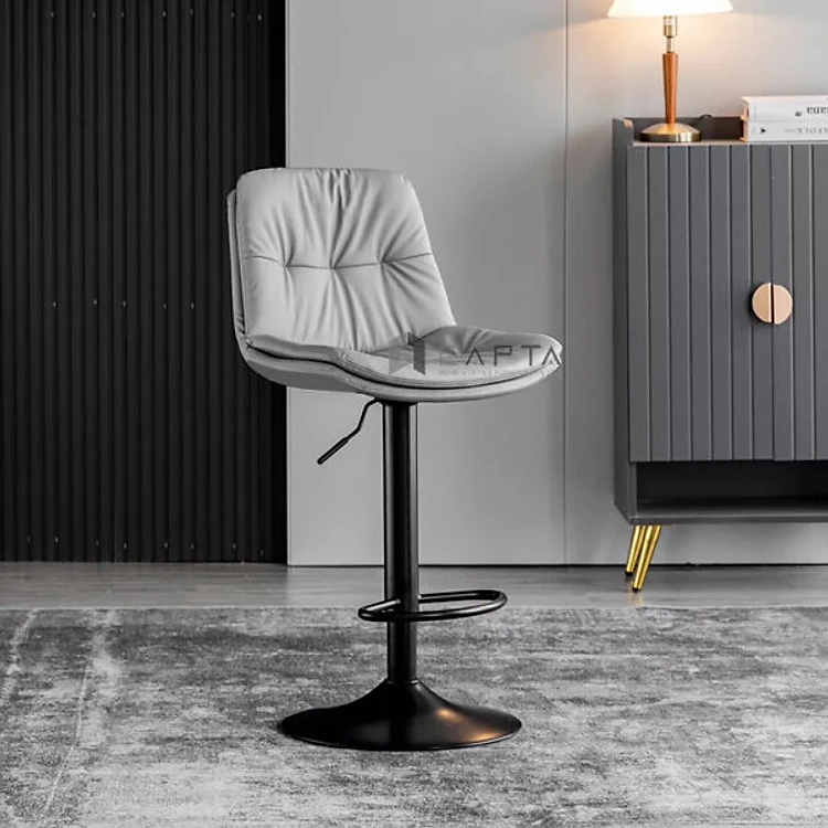 Ghế đảo bếp chân tăng giảm CB2283A-P Nội thất Capta Ghế bar nệm bọc PVC màu xám có lưng tựa chân thép sơn tĩnh điện màu đen