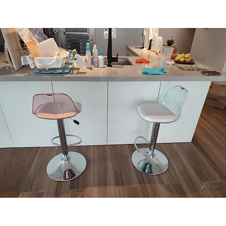 Ghế đảo bếp thân nhựa nệm pvc màu trắng CB2201-PC Nội thất Capta Ghế quầy bar thân trong suốt nệm pvc trắng chân thép cao mạ chrome tại tp hcm