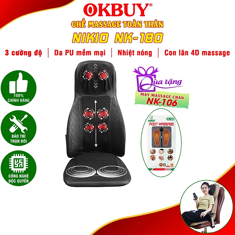 Ghế đệm massage lưng cổ vai gáy hồng ngoại Nikio NK-180 - Dùng được trên ô tô