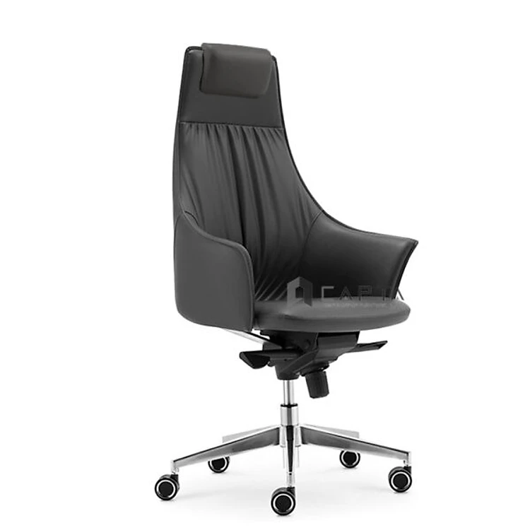 Ghế giám đốc nệm da PVC màu nâu bò / đen chân xoay hợp kim nhôm cao cấp Ghế sếp nữ hiện đại sang trọng HCM CM4482-P