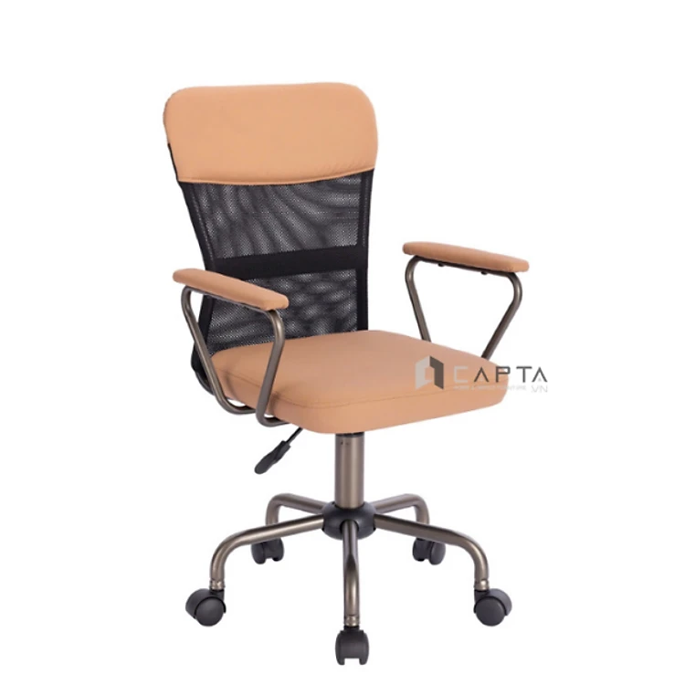Ghế học sinh trung học nâu bò CE1033-P Nội thất Capta Ghế học sinh cấp 2 lưng trung lưới đen nệm PVC nâng hạ gật gù chân thép sơn tĩnh điện màu xám – nâu