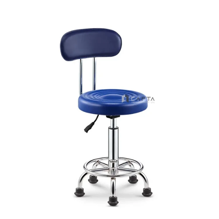 Ghế kỹ thuật viên có lưng tựa CB2256-2PS Ghế thao tác công nhân nhà máy nệm tròn bọc PVC chân ghế thép mạ chrome có bánh xe