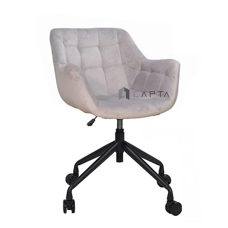 Ghế làm việc màu xám có bánh xe CE1022-F Nội thất Capta Ghế nệm nhung có thể điều chỉnh độ cao, Office Chair