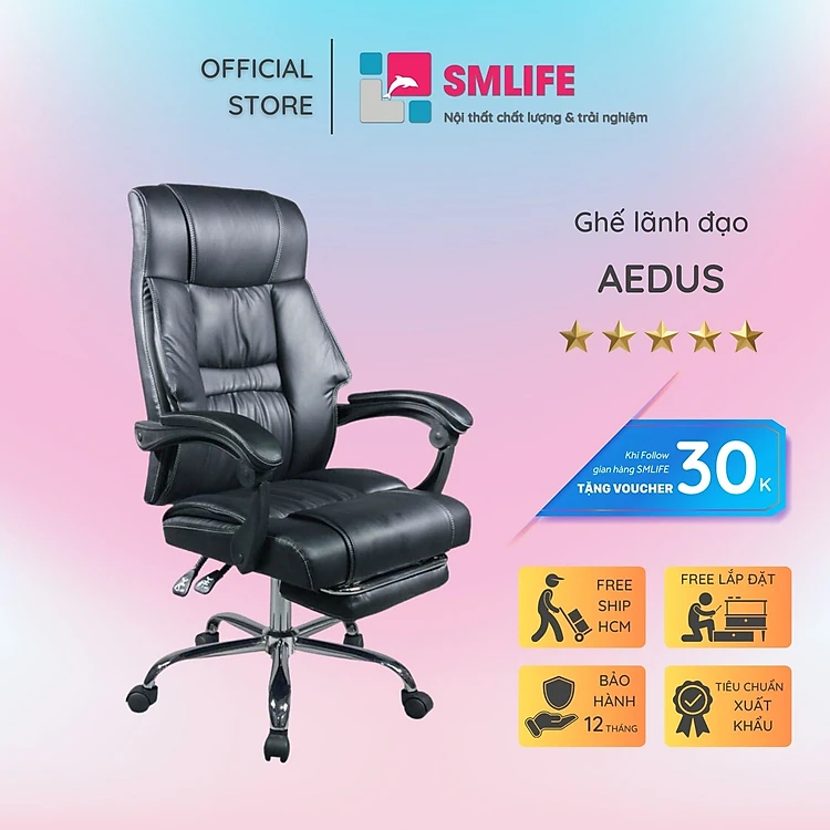 Ghế lãnh đạo lưng cao bọc PU có gác chân SMLIFE Aedus