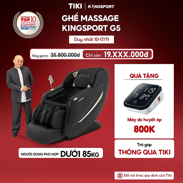 Ghế massage KINGSPORT Standard G5 BLACK cao cấp con lăn 3D với 8 bài tập, thiết kế hiện đại 2024, công nghệ massage chuyên sâu