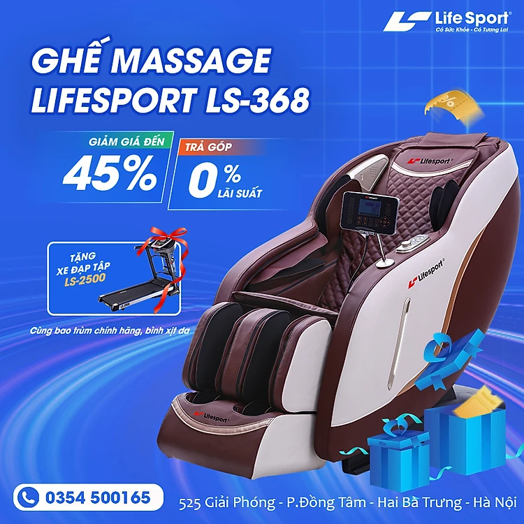 Ghế massage toàn thân LIFESPORT LS-368 [FULL QUÀ TẶNG] công nghệ mát xa nhiệt hồng ngoại tân tiến giúp thư giãn, giảm stress tại nhà