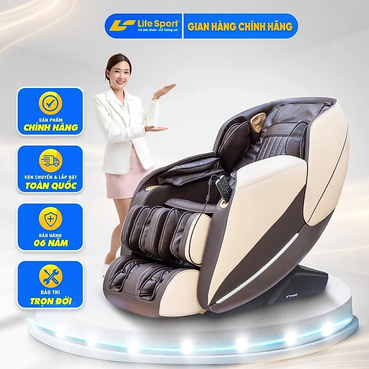 Ghế Massage Toàn Thân Lifesport LS-350 Plus, Ghế Massage Tích Hợp 5 Kỹ Thuật Và 8 Chương Trình Tự Động