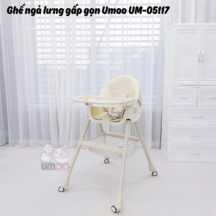 Ghế ngả lưng gấp gọn có bánh Umoo UM-05117 - Mã ghế đa zi năng nhất năm 2022, chấp hết mọi tư thế ăn nghiêng ngả của các siêu quậy nhí