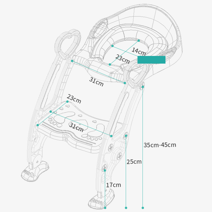Kích thước phù hợp cho bé, linh hoạt điều chỉnh góc nghiêng ăn khớp với các bồn bồn vệ sinh chênh lệch về độ cao.
