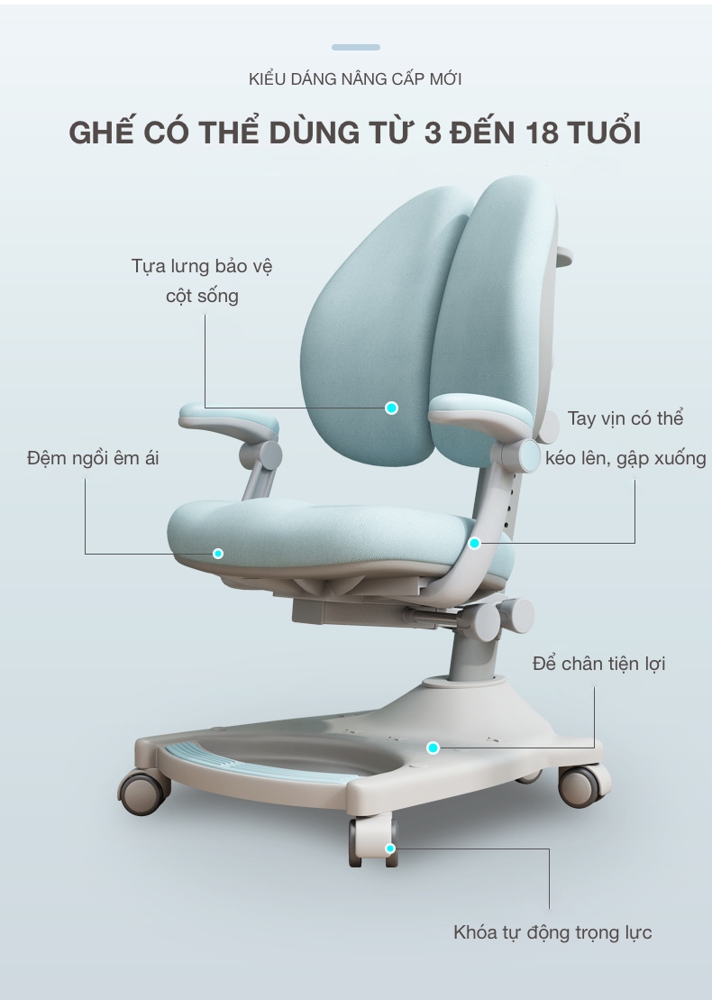 Là mẫu ghế chống gù lưng cho bé mới nhất được nhập khẩu và phân phối bởi HTDkids. Ghế hội tụ đầy đủ những tính năng ưu việt nhất của 1 chiếc ghế chống gù trên thị trường. Với thiết kế thông minh có thể tăng giảm chiều cao của cả ghế ngồi và tựa lưng theo độ tuổi và sự phát triển của trẻ, đế ngồi có thể điều chỉnh ra vào giúp điều chỉnh linh động cho tư thế ngồi của bé. Ngoài ra sẽ được tặng kèm bọc ghế tiện dụng, có thể tháo rời dễ dàng để vệ sinh. Bạn ở trung cư, bạn đã có bàn thiết kế sẵn và cần mua 1 chiếc ghế chống gù thì Y5SF là chiếc ghế không thể phù hợp hơn.
