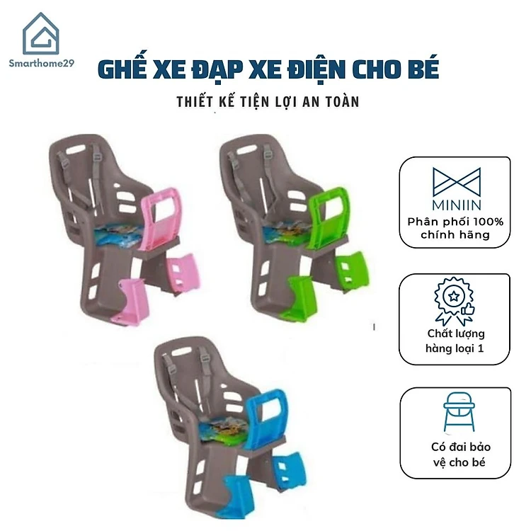 Ghế Ngồi Xe Đạp Xe Điện Cho Bé - Có Dây Thắt Và Tấm Chắn Chân An Toàn - Tiện Lợi - Hàng Loại 1- Chính Hãng MINIIN