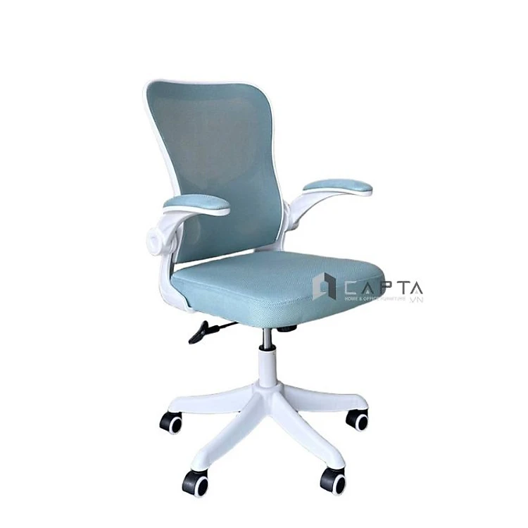 Ghế nhân viên nhỏ gọn CE4562-2M Nội thất Capta Ghế làm việc màu xanh màu hồng lưng lưới thoáng nệm vải chân nhựa xoay hcm