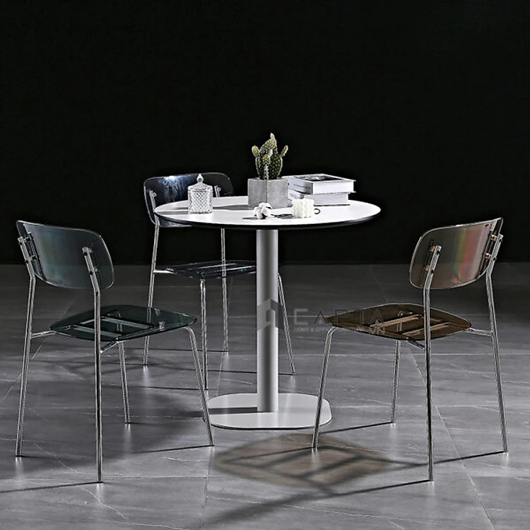 Ghế nhựa PC trong suốt ICE-PC Nội thất Capta Ghế Cafe Fastfood nhựa trong suốt màu xám khói xếp chồng có chân thép mạ chrome bóng