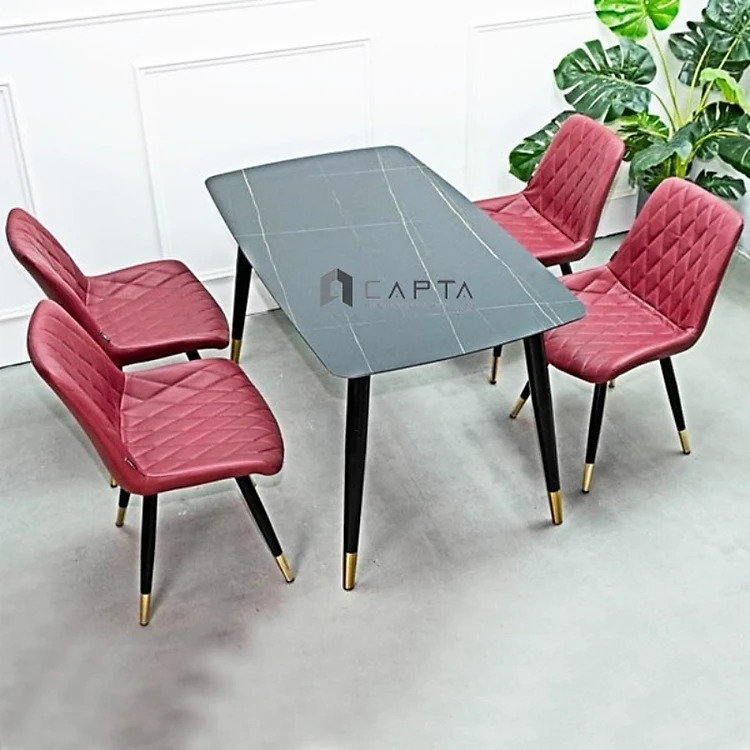 Ghế phòng ăn LUX 6C-P Ghế ăn có nệm PVC màu đỏ đô chân sắt sơn tĩnh điện mạ ống đồng
