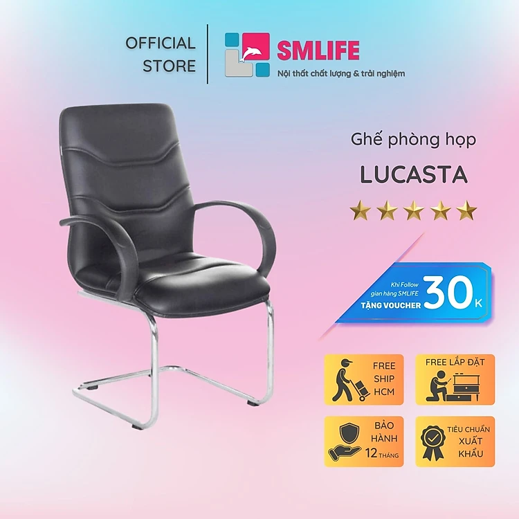 Ghế phòng họp chân quỳ bọc da SMLIFE Lucasta