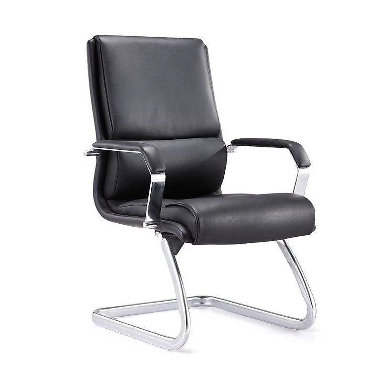 Ghế phòng họp chân quỳ có nệm da dày dặn tay vịn bọc ốp PVC chân thép mạ chrome bóng / black leather chairs / Chairs without wheels / Office chairs / Boss chairs / Morden chairs CV4417-P TpHCM