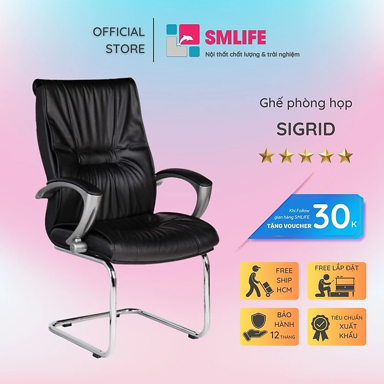 Ghế phòng họp chân quỳ inox bọc da SMLIFE Sigrid