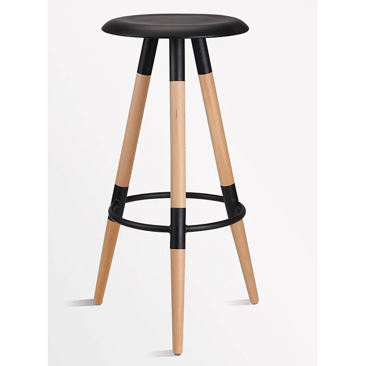 Ghế quầy bar 3 chân gỗ tự nhiên thân nhựa mặt tròn đẹp màu đen CB2128-S1 hàng nhập khẩu cao cấp hiện đại ở HCM