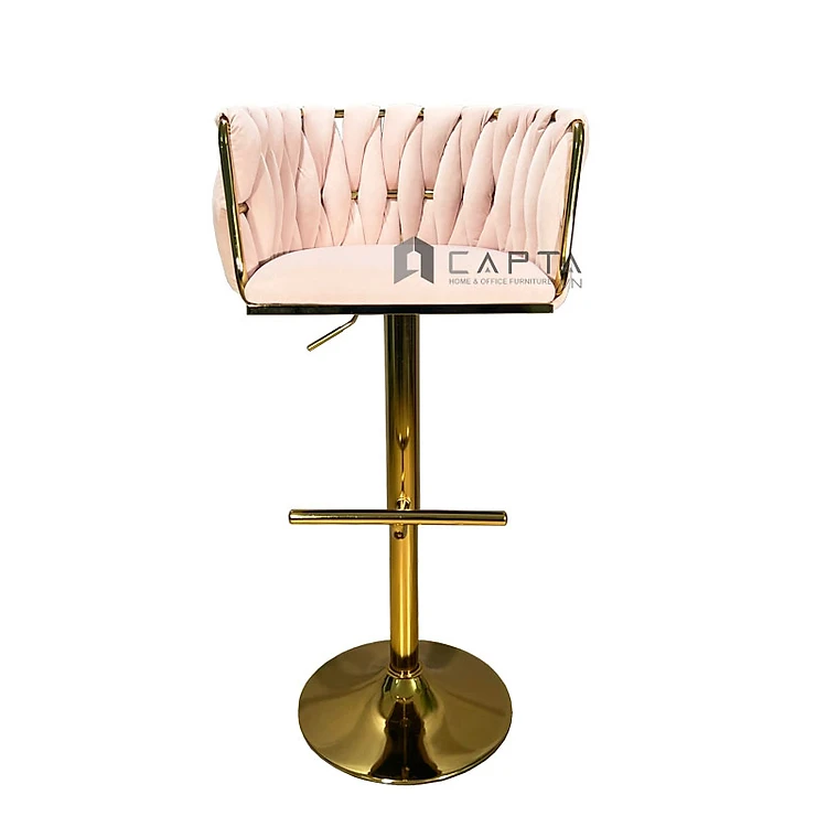 Ghế quầy bar màu hồng chân vàng CB2162B-F Nội thất Capta Ghế bar cafe nhà hàng nệm vải nhung chân thép mạ tăng giảm độ cao