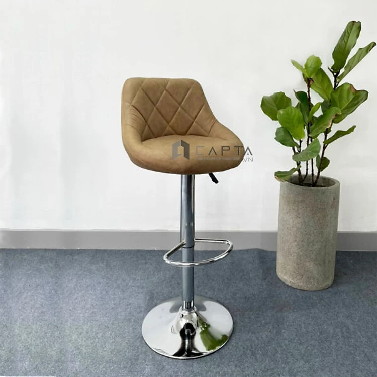 Ghế quầy bar nâng hạ độ cao nệm simili chân thép mạ Ghế đảo bếp nệm dày đẹp HCM CB2282-P