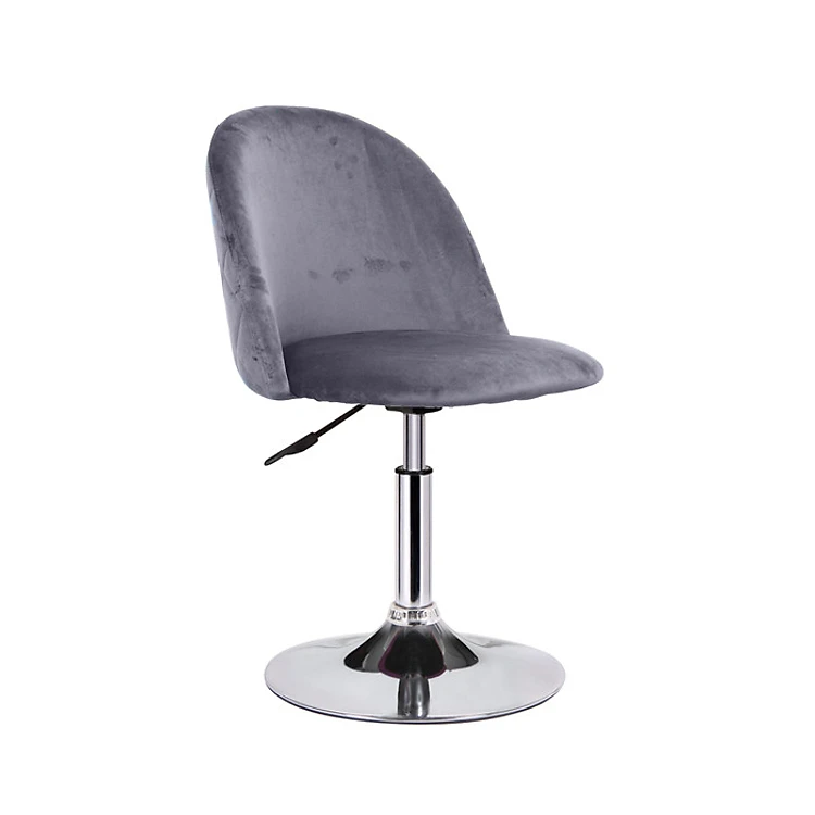 Ghế quầy bar xoay - Bar stool chair CB VELVET-2F chân thép mạ chrome chiều cao tùy chỉnh - pen thấp có lưng tựa nệm vải nhung êm ái nhiều màu lựa chọn ( xám ; hồng ; xanh dương đậm ; xanh ngọc ).