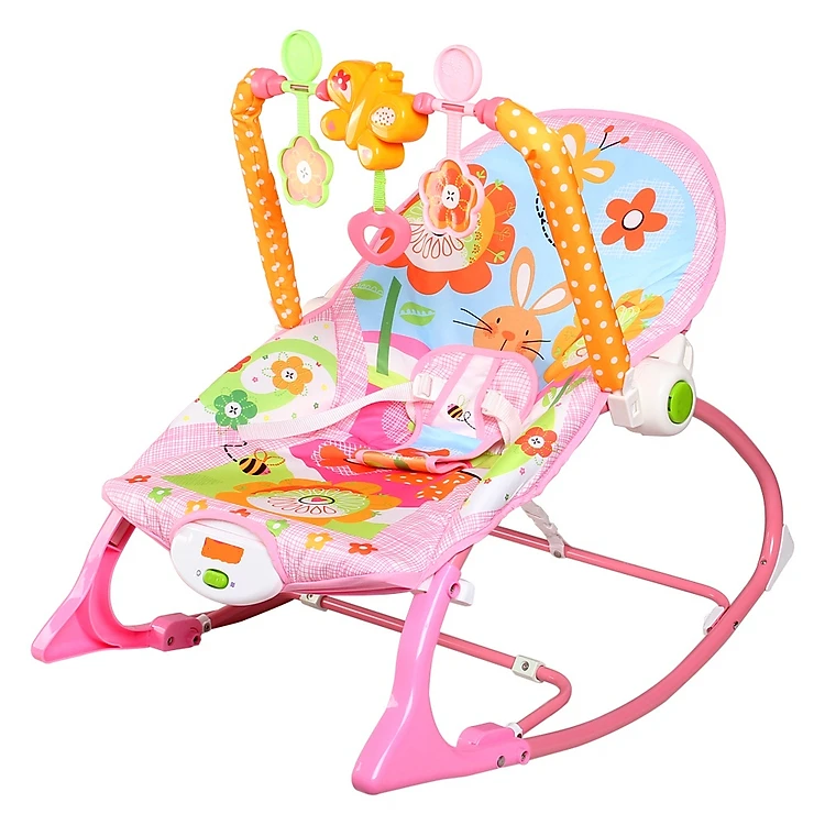Ghế rung, Ghế nhún dành cho Bé từ sơ sinh đến 18kg, có phát nhạc kích thích sự phát triển não bộ của trẻ- Màu Hồng cho Bé Gái (TẶNG 01 tranh ghép hình bằng gỗ kích thích sự phát triển của trẻ)