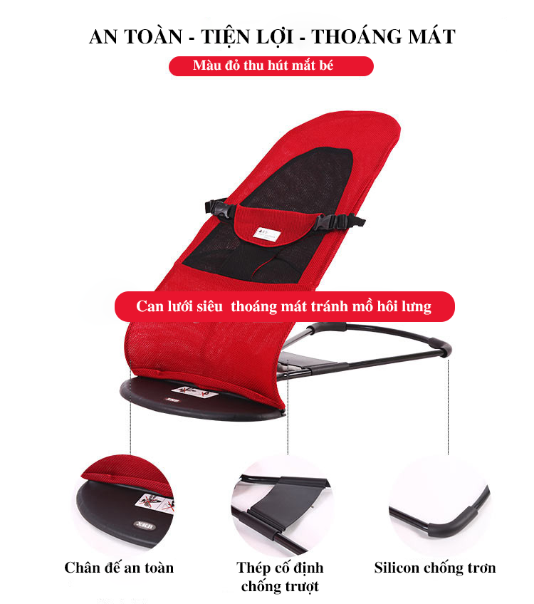 – Làm từ khung thép chịu lực tốt rất chắc chắn cho bé nằm và ngồi.