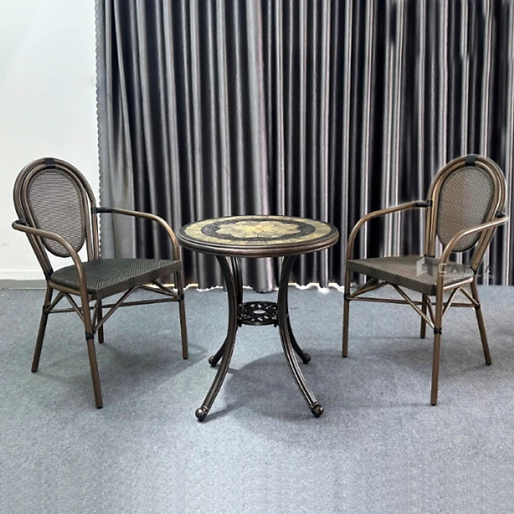 Ghế sân vườn có tay màu nâu CC2039-T Nội thất Capta Ghế cafe sân thượng có tay khung sắt sơn tĩnh điện màu nâu nệm lưới